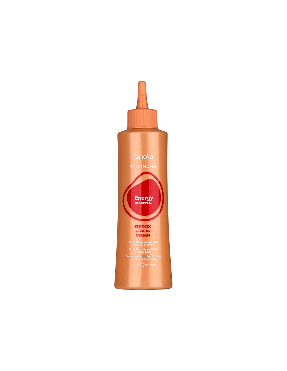 El Gel Fluido Scrub Detox Scalp Fanola Vitamins Energy 195 ml es un tratamiento exfoliante desintoxicante diseñado para purificar profundamente el cuero cabelludo en todo tipo de cabellos. Su fórmula especializada elimina eficazmente impurezas, células muertas y agentes externos, promoviendo una base capilar más saludable, equilibrada y llena de vitalidad.