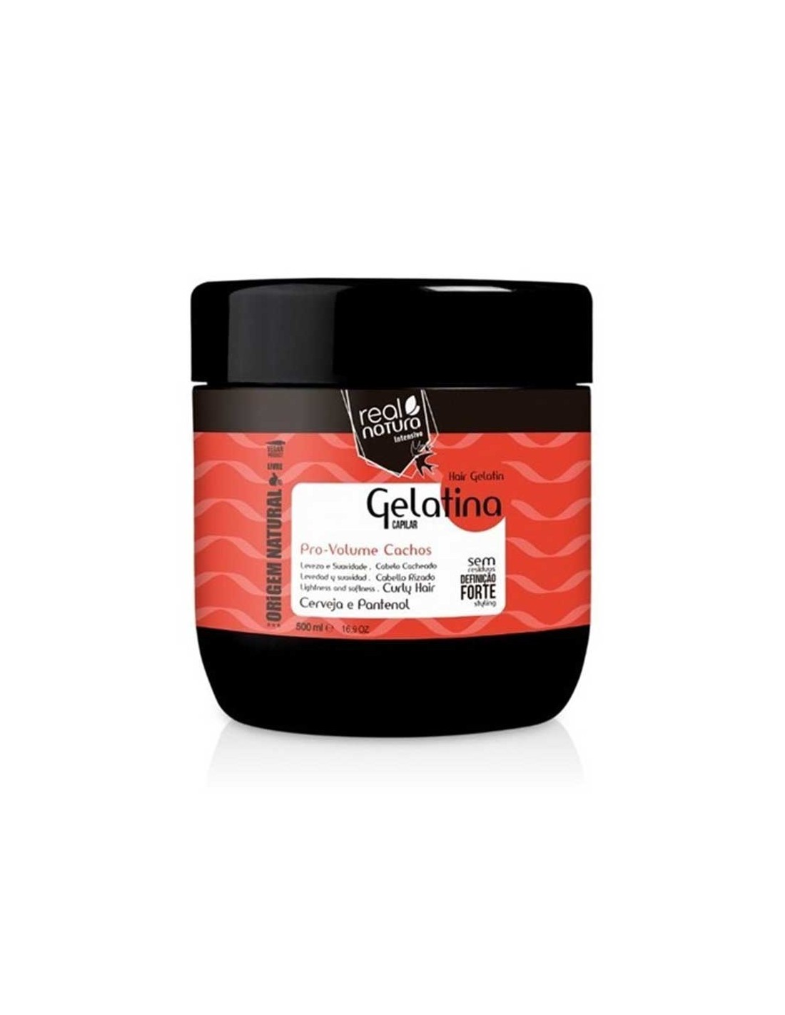 Gelatine de coiffage Pro Volume Boucles de Real Natura pour des cheveux bouclés et volumineux.